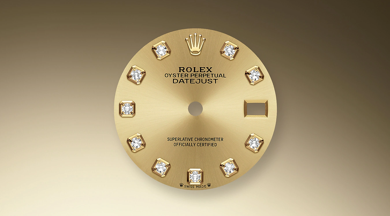 サンレイ仕上げは、オイスター パーペチュアルコレクションの多くのダイアルに繊細な光の反射をもたらす。これはダイアルの中心から外側に向かって溝を作る、熟練のブラッシング技術によるものだ。光はそれぞれの彫りに沿って均一に拡散され、手首の位置に応じてわずかに動く、特徴的な輝きを生み出す。
