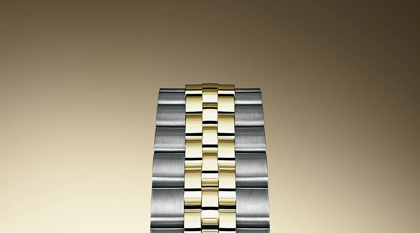 ロレックスのブレスレットやクラスプの設計、開発、製造、そして製品に課される厳しい試験には、最先端のハイテク技術が活用されている。また、すべての時計の部品と同様に、人間の目による照査によって、完璧な美しさが保証されている。ジュビリー(Jubilee)、 しなやかで快適な5列リンクの金属のブレスレットで、1945年にオイスター パーペチュアル デイトジャストの発売に合わせて特別にデザインされた。